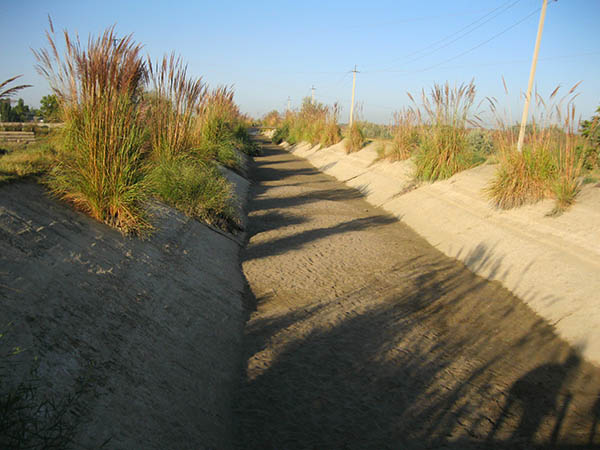 Буквально, несколько минут назад, когда мы переходили по мостику, насосы не работали, воды в арыке не было. На обратном пути канал уже был полон. В средней Азии без оросительных каналов невозможно заниматься земледелием. Летом дождей нет. А сельхоз культурам необходима вода. Приходилось строить целые сети каналов.
